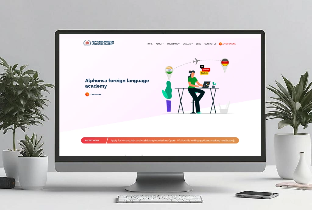 Alphonsa academy is a foreign language institution which help students to learn german language with all guidance and support, which is located in Pearl Tower, Junction, above ESAF Bank, Velloorkunnam, Muvattupuzha, and Near Sacred Heart Convent Poovarany, Pala,